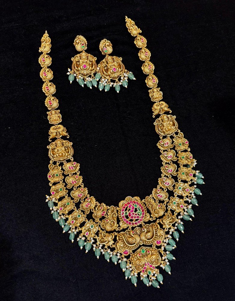 Categories: Antique, Bridal, Gold, Layered Necklaces, Long Necklaces, Muhurtham, Reception, South Indian